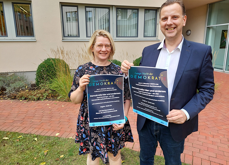 Brokstedt (anz) – Die „Lange Nacht der Demokratie“ ermöglicht Inspiration, Begegnung und Reflexion zur Bedeutung von Demokratie. Am Donnerstag, 2. Oktober, in der Nacht vor dem Tag der Deutschen Einheit, wird bei der „Langen Nacht der Demokratie“ in vielfältigsten Formaten über Demokratie philosophiert, diskutiert, gestritten und geslammt, Musik und Kultur genossen, gelacht und gefeiert. Es soll zum Mitmachen für die Demokratie begeistert werden. Die Veranstaltungen werden dezentral von Volkshochschulen und weiteren Akteuren geplant und umgesetzt.