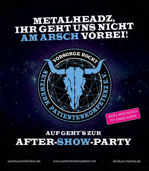 Wacken (anz) – Dem Netzwerk Patientenkompetenz e.V. gehen die Besucher des diesjährigen Wacken Open Air sprichwörtlich „nicht am Arsch vorbei“. Im Foundation Camp laden die Krebs-Experten des Netzwerks zur „After-Show-Party“ ein.