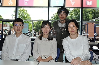 Die Lehrkräfte Chengha Jiang, Min Ye und Chunmei Gu sowie Dolmetscher Kaiz Yao begleiten die 27 chinesischen Schülerinnen und Schüler aus Shanghai bei ihrem Gegenbesuch in Bad Bramstedt.