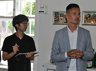 Felix Carl stellte seine Aufgaben als Bürgermeister in englischer Sprache vor. Nur vereinzelt sprang Dolmetscher Kaiz Yao mit chinesischen Ergänzungen ein.