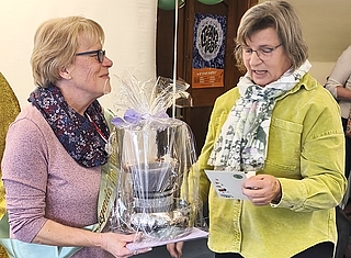 Die Vorsitzende des Schulverbandes, Claudia Peschel (re.), verabschiedete Christine Landschek mit dankenden Worten und einem Geschenk für ihr jahrzehntelanges Engagement als Schulleiterin der Grundschule Maienbeeck. Fotos: Straehler-Pohl
