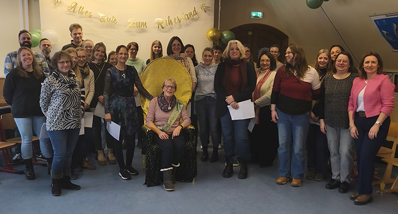 Mit einem auf sie zugeschnittenen Lied und Gedicht, einer musikalischen Einlage, sehr persönlichen Worten sowie zahlreichen Geschenken brachten ihr Kollegium sowie die weiteren Mitarbeiter der Schule ihre Wertschätzung zum Ausdruck. Dabei verdrückte nicht nur Christine Landschek Tränen. „Es ist hart, sie gehen lassen zu müssen, aber unmöglich, sie zu vergessen“, meinte Nadine Degen, die zusammen mit Imke Husmann bis zu einer Nachbesetzung die Leitung der Schule kommissarisch übernommen hat.
