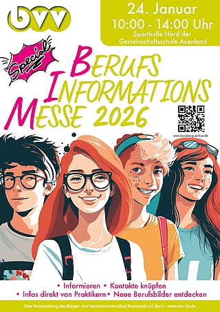 Mit dem QR-Code auf dem Plakat (siehe rechts) können die Jugendlichen sich in diesem Jahr schon genau anschauen, wo sich welcher Messestand und welches Unternehmen befindet und zur Vorbereitung schon einen digitalen Rundgang machen.