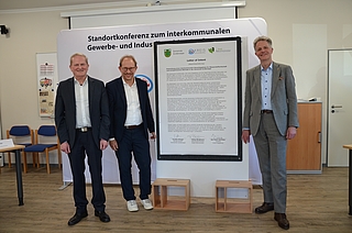 Im Rahmen einer Standortkonferenz unterzeichneten Bürgermeister Thorsten Klinger, Oberbürgermeister Tobias Bergmann und Landrat Jan Peter Schröder einen entsprechenden Letter of Intent / Bild: ©WKS