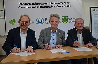 Mit dieser Absichtserklärung bekräftigten die drei Partner ihr gemeinsames Interesse, die Entwicklung des Standortes künftig abzustimmen und interkommunal zu gestalten / Bild: ©WKS