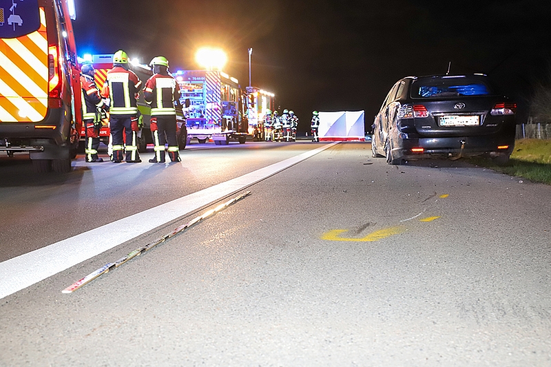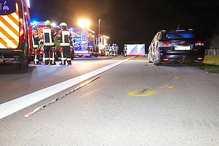Großenaspe/A7 (fs) - Ein 31-jähriger Autofahrer ist in der Nacht zum heutigen Donnerstag, 2. April, bei einem schrecklichen Unfall auf der A7 bei Großenaspe ums Leben gekommen. Zwei Männer (31, 21) waren mit ihrem Toyota kurz nach Mitternacht hinter der Anschlussstelle Großenaspe in Richtung Bad Bramstedt aufgrund eines leeren Tanks liegengeblieben. Ob die Männer wegen der hohen Spritpreise nicht genügend getankt hatten, ist unklar. Die beiden sollen das Fahrzeug anschließend auf dem Standstreifen in Richtung Süden geschoben haben, als ein 33-jährige Fahrer eines 40-Tonners von seiner Fahrspur abkam und das Pannenfahrzeug, sowie den 31-Jährigen mit hoher Geschwindigkeit erfasste. Der Mann starb aufgrund seiner schweren Verletzungen noch an der Unfallstelle. Der 21-jährige Beifahrer erlitt einen Schock, blieb aber unverletzt. Die Freiwillige Feuerwehr Großenaspe war mit einem Großaufgebot an die Unfallstelle ausgerückt, da zuerst von einem überschlagenen Fahrzeug ausgegangen wurde. Wegen der Unfallaufnahme war die Autobahn anfangs gesperrt, anschließend konnte der Verkehr über den linken Fahrstreifen abfließen. Ein Sachverständiger der Dekra sicherte für die Rekonstruktion des Unfallhergangs Spuren an der Unfallstelle. Der Lkw-Fahrer aus Dänemark gab vor Ort an, sowohl das Fahrzeug als auch die beiden Männer nicht gesehen zu haben. Foto: Sprenger