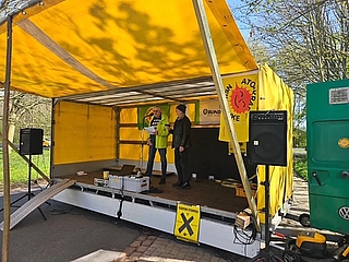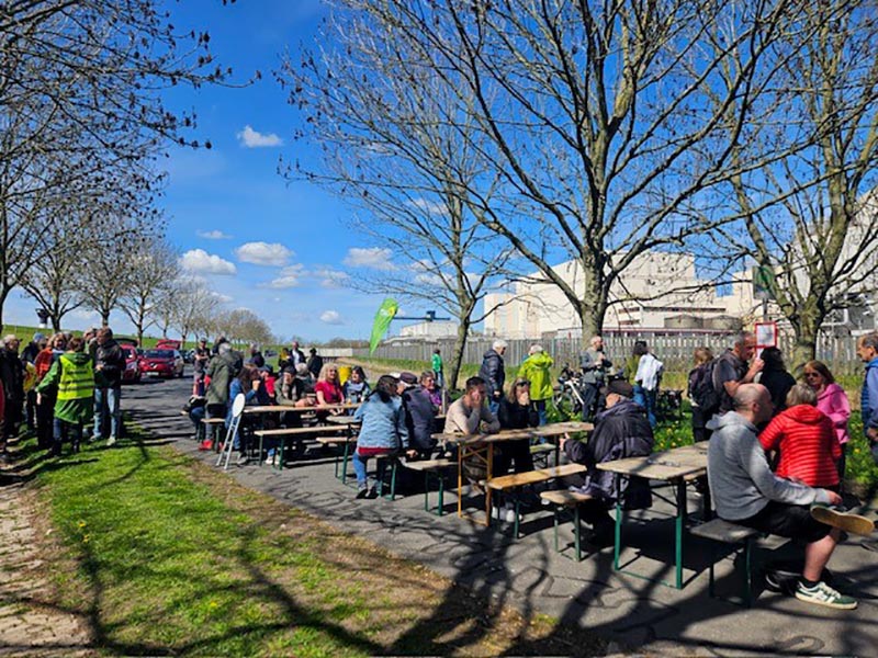 Ole Eggers, Landesgeschäftsführer des BUND SH, wies über Deutschland hinaus und betonte u. a. mit Blick auf den hoch verschuldeten französischen Energiekonzern EDF die schlechte Wirtschaftlichkeit von Atomenergie. Da seien Milliarden an Subventionen vom französischen Staat ganz bewusst auch mit dem Hintergedanken der atomaren Aufrüstung in den AKW versenkt worden, die als Forschungsgelder für Erneuerbare, z. B. Speichertechnologien, weit sinnvoller angelegt wären. Projekte mit den vielfach gepriesenen (gar nicht so kleinen) Small Modular Reactors (SMR) seien, wie zuletzt in Idaho, auch aufgrund explodierender Kosten aufgegeben worden. „Die Diskussion um Nutzung und Begrenzung von Energie ist auch in Zukunft notwendig“, betonte Eggers, „aber in Frieden und ohne Atomenergie!“