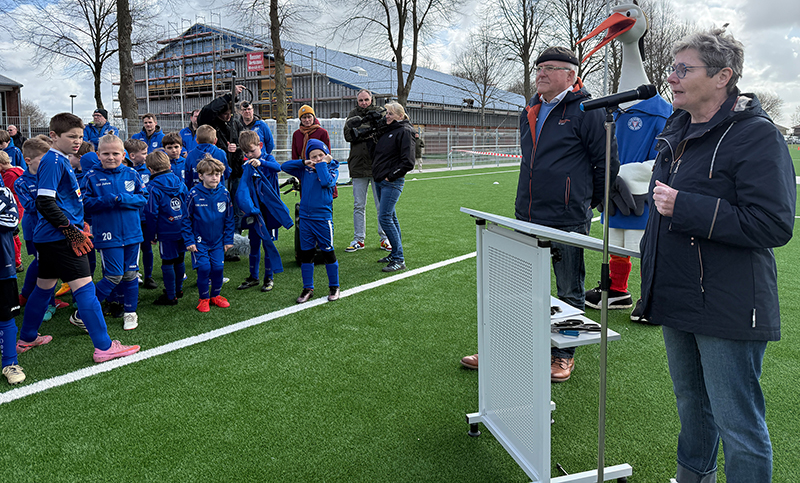 TuS-Vorsitzende Maria Gefken-Meinert bedankte sich bei allen, die zum Gelingen dieses Kunstrasenplatzes beigetragen hatten.