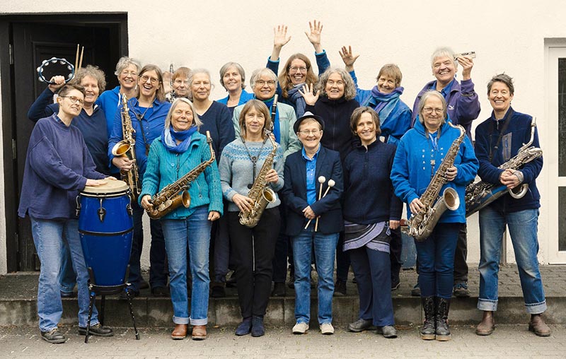 Bertha Blau, 2003 gegründet, besteht ausschließlich aus Frauen, die sowohl musikalisch als auch in Sachen Instrumentarium gerne mal über den Tellerrand hinausblicken. So müssen bei den Percussionistinnen neben Schlagzeug und Congas auch Glasflaschen für den Rhythmus herhalten und die Bläserinnen tauschen das Blech gerne mal gegen Dudelsack, Blockflöte oder Melodika. Musikalisch ist von Swing und Latin über Klezmer bis zu Filmmelodien, Pop und Folk alles möglich. Eine musikalische Wundertüte – nicht nur für Frauen!