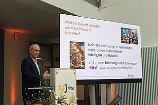 Schließlich wagte der Wirtschaftswissenschaftler und Gesundheitsökonom Boris Augurzky einen Blick in die Zukunft. Aufgrund des demografischen Wandels sah er zwar ein Tal der Tränen voraus, hob aber auch das Potential und die Möglichkeiten der technischen Entwicklung wie Robotertechnik und künstliche Intelligenz hervor, die Ärzte und Pfleger nicht ersetzen, sondern entlasten würde.