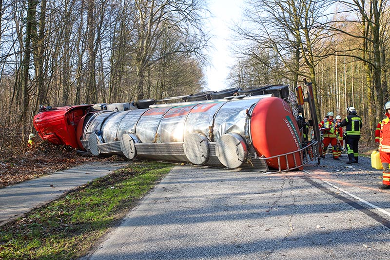Nach bisherigen Erkenntnissen war das mit Bitumen beladene Fahrzeug gegen 8.15 Uhr aus Richtung Itzehoe kommend in Fahrtrichtung Hungriger Wolf unterwegs. Aus bislang ungeklärter Ursache geriet der 68-jährige Fahrer im Kurvenbereich von der Fahrbahn ab. In der Folge kippte der Lkw um und kam auf der Fahrbahn sowie auf dem Seitenstreifen zum Liegen.