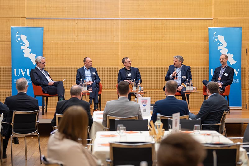 Auf dem Podium diskutierten Andreas Hein, Landtagsabgeordneter (CDU) aus Dithmarschen, Malte Krüger, Landtagsabgeordneter (Bündnis 90/Die Grünen) aus dem Kreis Steinburg, Arne Möbest von Cimbergy (Nordfriesland) sowie Peter Heberling von Sasol (Dithmarschen). Die Moderation übernahm Lutz Bitomsky, erster Vorsitzender des UVUW.