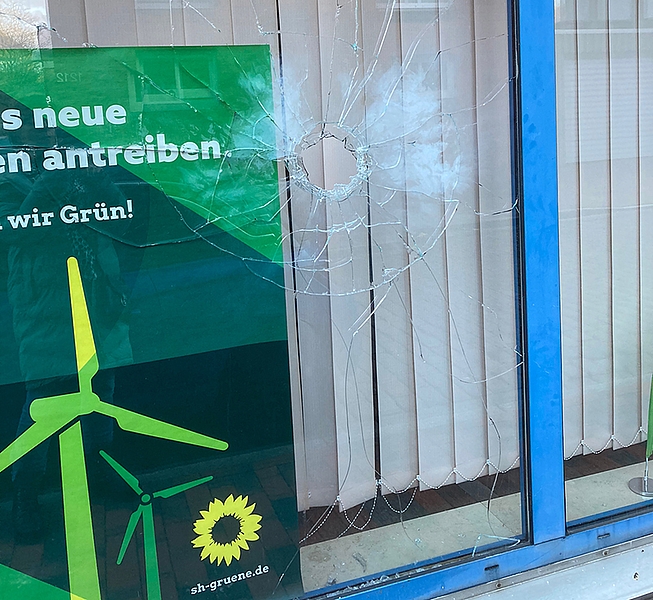 Itzehoe (anz) – Welch negative Überraschung im Neuen Jahr: Höchstwahrscheinlich zur Silvesternacht wurde ein Anschlag auf das Parteibüro „Grüner Treff“ in der Reichenstraße in Itzehoe verübt. Nach ersten Erkenntnissen der Polizei ist ein Böller gezielt mit Panzertape an der Scheibe befestigt worden. Trotz Sicherheitsglas ist durch alle Schichten ein etwa 15 Zentimeter großes Loch entstanden. Im gesamten Büro waren Glasscherben aufzufinden.