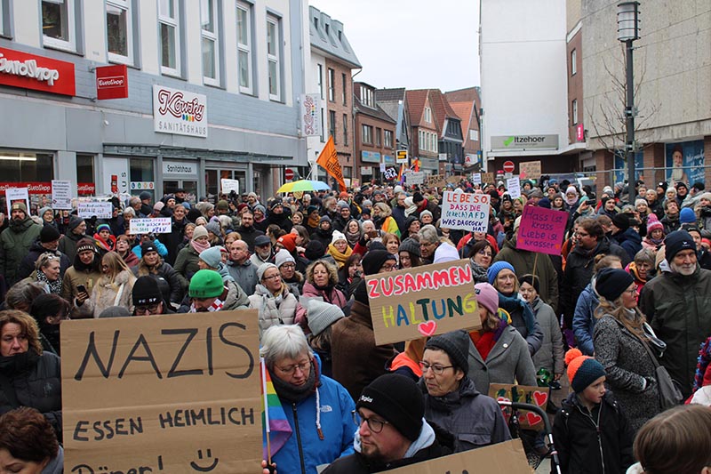 Itzehoe (bg) – Der La Couronne-Platz war schon zu klein, um alle Teilnehmer der Demonstration „Wir sind die Brandmauer!“ aufzunehmen, zu der unter anderem das Netzwerk gegen Rechts, die Kulturinitiative Mittel-Holstein e. V., Solid Kreis Steinburg und das Bündnis für Toleranz Kellinghusen und Umgebung aufgerufen hatten.