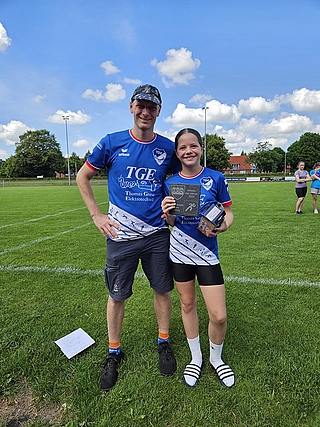 Nelly Franke vom TSV Brokstedt hat die Jury des KLV überzeugt mit ihrem freudigen, freundlichen Auftreten, der guten Laune und der Empathie, verbunden mit aufmunternden Worten und Gesten, falls es bei anderen mal nicht so gut lief. Sie wurde zur Athletin des Jahres 2024 gewählt.