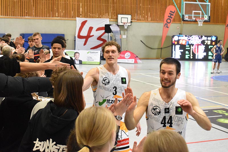 Wer nun erwartet hat, dass die Itzehoer nach der Kabinenansprache durch Coach Timo Völkerink wieder zur anfänglichen Überlegenheit zurückfinden, sieht sich im dritten Viertel getäuscht: Die Berliner haben längst Lunte gerochen und gehen nun sogar knapp in Führung. Die Eagles kontern, die Souveränität ist allerdings weg. Es entwickelt sich ein hartes, bisweilen zähes Ringen, das sich im letzten Abschnitt fortsetzt. Dann trifft Sven Cikara zwei wichtige Dreier für die Eagles und findet danach im Fastbreak Quadre Lollis – 74:67, noch zwei Minuten. Es geht hin und her bis zu den aufreibenden letzten 20 Sekunden, die mit Riesenjubel in der Halle enden. Wer es noch einmal sehen möchte: Die Partie ist im Relive zu sehen im Kanal der Eagles auf Twitch.