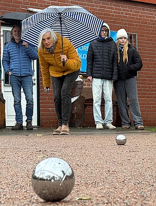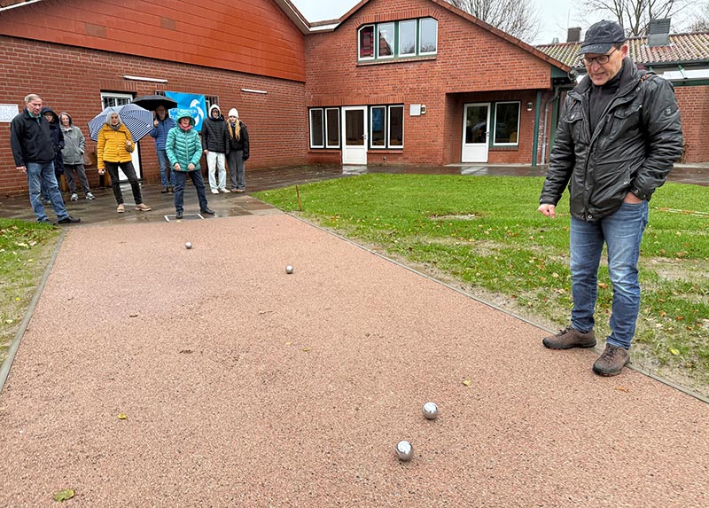 Trotz des „Schietwetters“ schoben die Boulefreunde unbeirrt ihre Kugeln über die Bahn. Das typische Klirren der Metallkugeln war auch unter der dichten Wolkendecke gut zu hören. Bislang mussten die Oldendorfer zum Boulespielen nach Heiligenstedten oder Kremperheide ausweichen. Umso größer war die Freude über eine eigene Anlage im Ort.