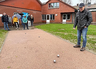 Oldendorf (mk) – Das Wetter zeigte sich alles andere als einladend, doch die Oldendorfer Boulespieler ließen sich von den Launen Petrus‘ nicht aus der Ruhe bringen. Mit der schweren Boulekugel in der Hand nutzten sie erstmals die neue Möglichkeit, direkt in ihrer Gemeinde zu spielen. Denn am Dorfgemeinschaftshaus wurde kürzlich eine eigene Boulebahn fertiggestellt.
