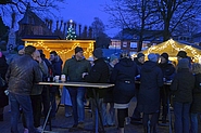 Hohenaspe (sn) – Im Bürgersaal ein Kunsthandwerkermarkt, auf dem Außengelände Crêpes, Bratwurst, Pommes, Räucherfisch, Kaffee und Kuchen sowie Heiß- und Kaltgetränke – es wurde voll beim „Weihnachtstreff“ rund um den Bürgersaal in Hohenaspe. Organisiert vom Verein „Hohenaspe trifft sich“ in Zusammenarbeit mit den örtlichen Vereinen und Gewerbetreibenden, drängelten sich schnell mehrere Hundert Gäste hinter und im Bürgerhaus zu Kaffee, Glühwein und Bratwurst. Für die musikalische Untermalung und weihnachtliche Stimmung sorgten der Feuerwehr-Musikzug und die Jagdhörnchen. Am Nachmittag kam der Weihnachtsmann mit Geschenken für die Kleinsten, begleitet von zwei „Engeln“, zwei verkleideten Mädchen aus dem Dorf. Abgerundet wurde der Weihnachtsmarkt durch eine große Tombola, in der große und kleine Gewinne zu ergattern waren. Für den Vorsitzenden des ausrichtenden Vereins „Hohenaspe trifft sich“, Thomas Wieser, ein voller Erfolg: „Es waren so wahnsinnig viele Hohenasper hier, dass es richtig voll wurde“, sagte er. „Und unser Außenprogramm, ergänzt durch den kleinen Kunsthandwerkermarkt im Bürgerhaus, hat alle Wünsche erfüllt.“