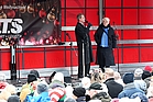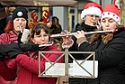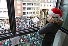 Neumünster (ger) – „Für mich beginnt die Weihnachtszeit erst so richtig mit dem Turmkonzert in Neumünster!“ Diese und ähnliche Sätze hören wir sehr gerne – und wir freuen uns auch in diesem Jahr gemeinsam auf das Turmkonzert in der Innenstadt von Neumünster“, so Marc Hein vom Citymanagement. Traditionell begann das Konzert um 12:00 Uhr mit dem Öffnen der Fenster und dem Weihnachtslied „Alle Jahre wieder“, gespielt von den Holz- und Blechbläsern des Mädchen-Musikzugs Neumünster und des Blasorchesters Tungendorf. Aber… es gab einen neuen Standort: In diesem Jahr fand das Turmkonzert erstmals direkt vor der neuen Sparkasse Südholstein (ehemals Karstadt-Gebäude) statt. Dort erwartete die Zuschauer zusätzlich ein musikalisches Bühnenprogramm auf der LKW-Bühne direkt am Gebäude. Bereits ab 11:00 Uhr wartete im Sparkassen-Weihnachtsdorf eine kleine Überraschung auf die Kinder. Uns ist zu Ohren gekommen, dass dort jemand ganz Besonderes eine Pause einlegt und Süßigkeiten verteilt… Für das leibliche Wohl wurde ebenfalls gesorgt: Dafür standen Glühweinstände sowie ein Schankwagen des Rotary Clubs bereit. Auch Waffeln wurden gereicht. Die gemeinnützige Organisation aus Neumünster sammelte Spenden für bedürftige Vereine. Wie so oft gab sich das norddeutsche Wetter klassisch grau mit Sonne, aber viele Nordnasen haben das gepflegt ignoriert… Trotzdem waren viele Zuhörer zugegen und genossen die heimelige Stimmung.