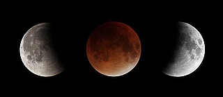 Eine Bildmontage der drei wichtigsten Phasen einer Mondfinsternis (aufgenommen am 28. September 2015). Bei der „MoFi“ am 7. September wird nur die zweite Phase (mittleres und linkes Bild) über Norddeutschland sichtbar sein. © Marco Ludwig