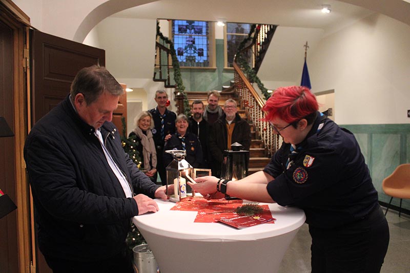 „Die kleine Flamme ist ein gutes Zeichen für den Frieden“, sagte Pfadfinder Erwin Schmuhl. „Sie bringt Licht und Wärme in die Welt. Allerdings ist sie schwer zu bewahren, braucht Aufmerksamkeit und kann, wenn man nicht aufpasst, auch alles zerstören.“