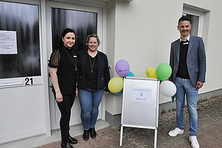 (V.li.) Julia Lippstreu und Katrin Wünsche und der Geschäftsführer der Lebenshilfe, Felix Carl, sind äußerst zufrieden mit den neuen Räumlichkeiten des Familien- und Integrationszentrums am Bleeck 21. Fotos: Straehler-Pohl