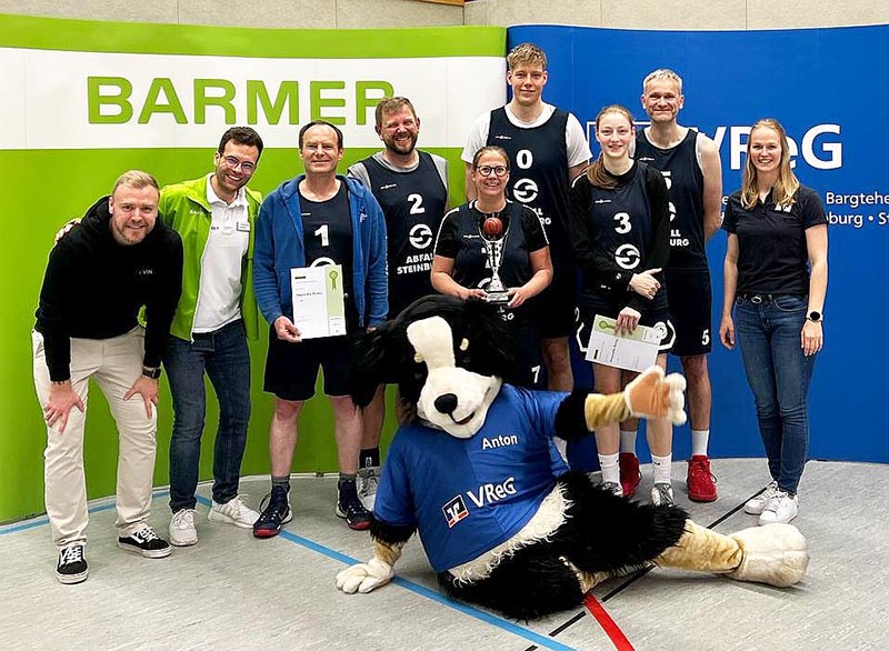 Itzehoe (anz) – Es war die dritte Auflage für die BARMER VReG Basketball Challenge, und zum ersten Mal hieß der Sieger nicht Prokon Hurricanes. Der Pokal wanderte in das Itzehoer Kreishaus: Die Stonecastle Ballers setzten sich im Finale gegen das Prokon-Team mit 13:8 durch.