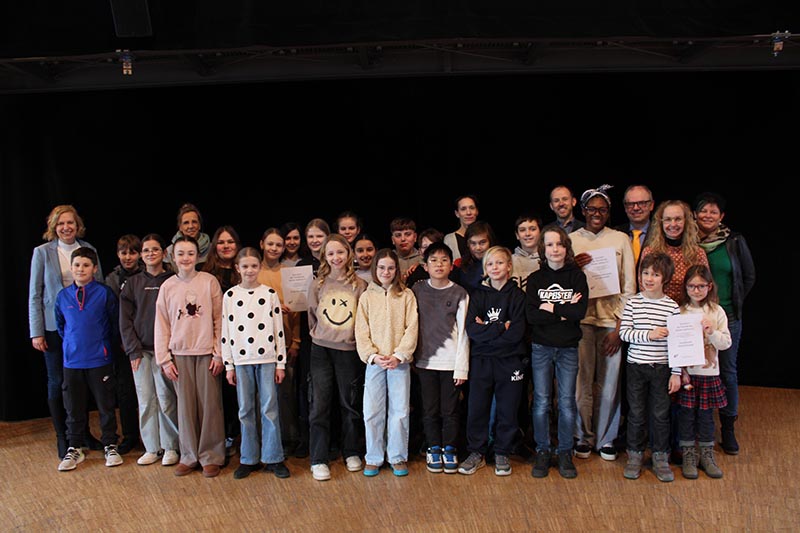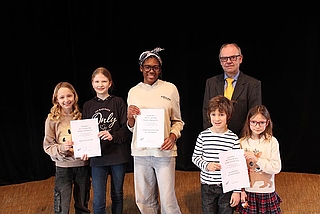Von der Grundschule Hohenlockstedt waren Jonne Arnemann und Carlotta Baum aus der 2a zur Preisverleihung ins theater itzehoe angereist. „Wir haben ‚Mama Muh räumt auf‘ gesehen“, erzählen sie und Lehrerin Yvonne Zengerling-Bause ergänzt: „Für uns ist es aufgrund der Entfernung natürlich immer etwas aufwändiger, ins Theater zu gehen. Aber es gibt den Kindern noch einmal einen ganz neuen Blickwinkel auf Themen. Und für einige ist es mit uns das erste Mal. Sie lernen dabei auch die Grundlagen eines Theaterbesuchs, wo man beispielsweise die Jacken abgibt oder wann man klatscht.“ Als nächstes sei der Besuch des Stücks „Käpten Knitterbart“ mit den ersten und zweiten Klassen geplant.