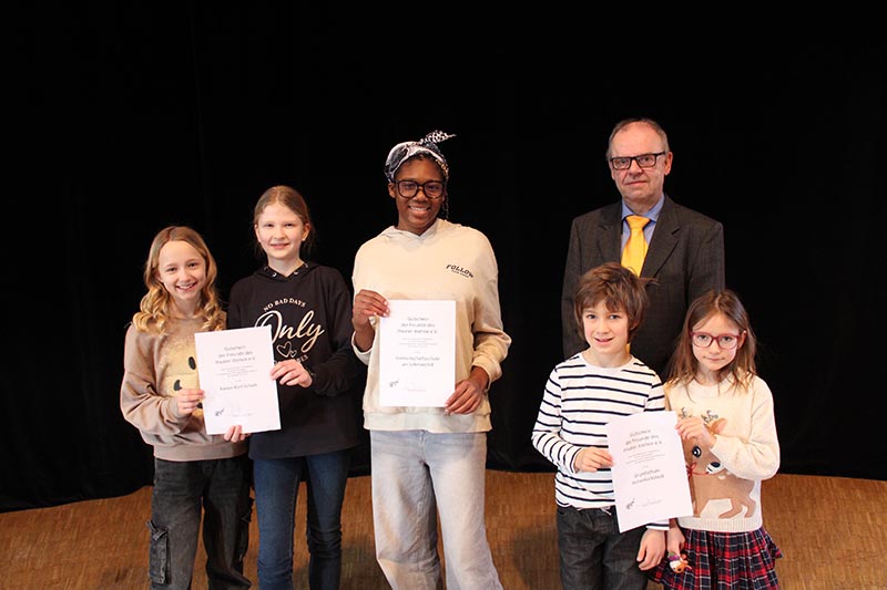 Schon seit einigen Jahren wird deshalb der Schulpreis ausgeschrieben. Die drei Schulen, die das Theater in der vergangenen Saison am häufigsten besucht haben, können einen Klassensatz für ein Theaterstück ihrer Wahl gewinnen. In der Kategorie „Grundschule“ ging der Preis an die Grundschule Hohenlockstedt, in der Kategorie „Gemeinschaftsschule“ an die Gemeinschaftsschule am Lehmwohld (GemSaL) und in der Kategorie „Gymnasium“ an die Kaiser-Karl-Schule (KKS).