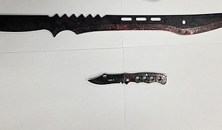 Der Grund für die Flucht war schnell klar: Es handelte sich bei um zwei Jugendliche im Alter von 13 und 14 Jahren. Der Jüngere hatte unter seiner Jacke eine Machete mit einer Klingenlänge von 40 cm versteckt (siehe Bild). Bei dem 14-Jährigen wurde in der Hosentasche ein Einhandmesser gefunden.