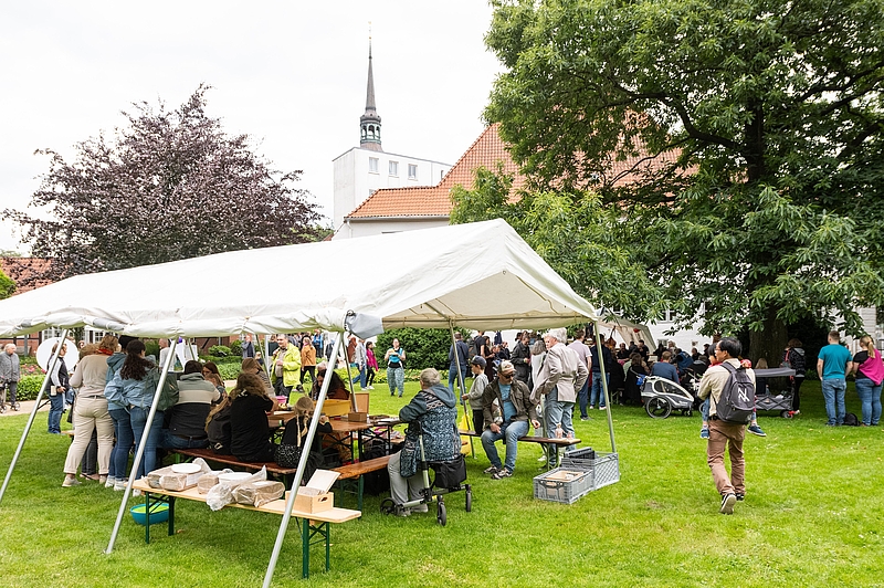 Das idyllische Parkgelände rund um das Kreismuseum bietet die perfekte Kulisse für einen entspannten, fröhlichen Nachmittag. Den Auftakt macht der Küken-Chor der Innenstadtgemeinde, gefolgt von mitreißenden Tanzvorführungen der Hip-Hop-Crew vom Jugendtreff Wellenkamp und des TSV Lola. Für staunende Gesichter sorgt das „Weltentor“ mit einer faszinierenden Riesen-Seifenblasen-Show.