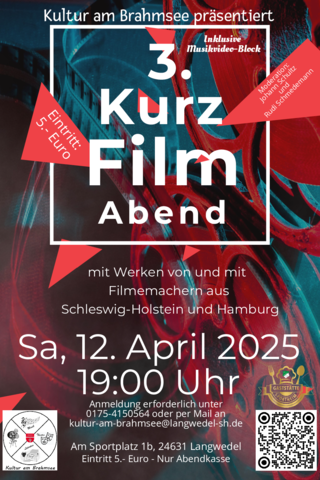 Langwedel (pm) – Am Samstag, den 12. April um 19 Uhr findet bereits zum dritten Mal der beliebte Kurzfilmabend im Sportheim in Langwedel statt. Gastgeber Rudi Schmedemann begrüßt mit seinem Mit-Moderator Johann Schultz, selbst bekannt als Filmemacher und Medienpädagoge sowie Vorstandsmitglied beim Landesverband Jugend und Film S-H, namhafte und (noch) unbekannte Filmemacher aus Schleswig-Holstein und Hamburg. Eine ganze Reihe an interessanten Kurzfilmen werden an diesem Abend zu sehen sein, dabei ein Special "Musikvideos", beim dem der Fokus mehr auf den Film zur Musik gelegt wird. Von jedem Beitrag werden Teammitglieder anwesend sein und dem Publikum persönlich in kurzen Interviews vorgestellt. Natürlich sind die Zuschauer herzlich aufgefordert, sich an Diskussionen mit Fragen zu den Filmen zu beteiligen! Im Anschluss an den Kurzfilmabend bietet sich dann noch allen die Gelegenheit, Smalltalk und Networking mit den Filmemachern zu betreiben. Für das leibliche Wohl wird durch das Team von der Gaststätte Sportheim bestens gesorgt sein.