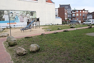 Ein Leerstand, bei dem es mit der Belebung bald losgehen soll, ist der Spielplatz an der Breiten Straße. Der Spielplatz soll um eine Rollstuhlschaukel und eine Kletterwand ergänzt werden. Auf der anderen Seite des Weges, da wo jetzt Rasenfläche ist, sollen wettergeschützte Sitzmöglichkeiten für junge Leute entstehen. Zum Parkplatz hin sorgt mehr Begrünung für eine optische Abgrenzung.