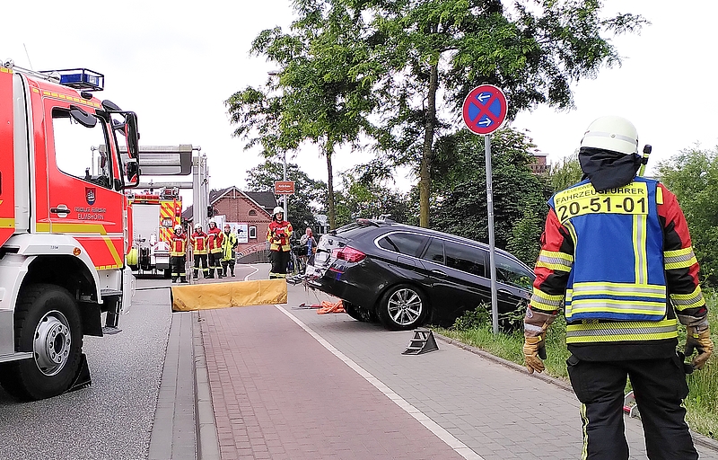 Wie die Polizei mitteilte, war die Frau aus Richtung Wedenkamp auf der Deichstraße auf die Brücke zugefahren, als sie nach rechts von der Fahrbahn abkam. Ihr Ehemann berichtete der Holsteiner Allgemeinen am Unfallort, dass ihr am Steuer plötzlich schwindelig geworden sei. Ein weiterer Verwandter fuhr zu dem Zeitpunkt mit einem anderen Fahrzeug hinter ihr her. Als er den Unfall bemerkte, hielt er sofort an und kletterte zu dem verunglückten BMW hinab, öffnete die Fahrertür und half der Frau, aus dem Regenrückhaltebecken herauszusteigen.
