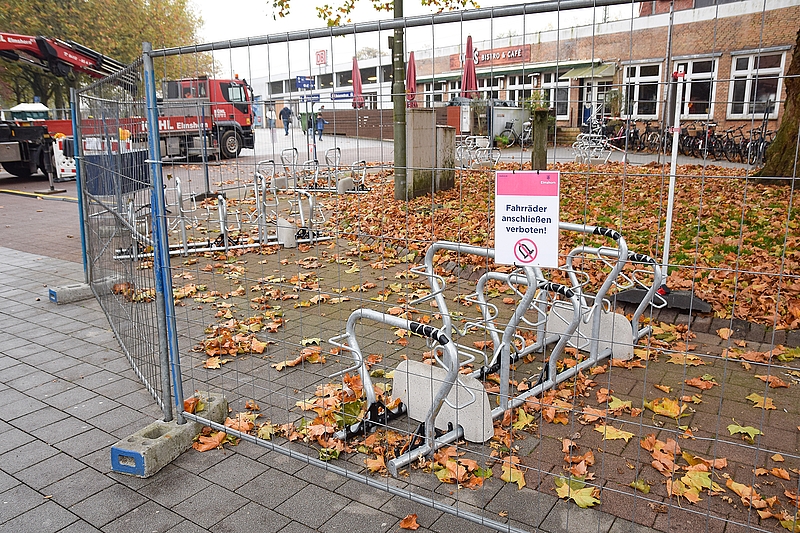 Elmshorn (jhf) Manch ein Radfahrer hat sich gewundert: Die Firma Lopacinski stellte am Freitag, 1. November, zwar neue Fahrradbügel auf dem Holstenplatz am Bahnhof auf. Allerdings konnten Bürger die Anlagen am Wochenende nicht nutzen, da Bauzäune den Zugang versperren. Diana Markstein, Sachgebietsleiterin Verwaltung Tiefbau im Rathaus, teilte auf Anfrage der Holsteiner Allgemeine mit, dass die Fahrradbügel erst noch abgenommen werden müssen. Dieser Schritt soll am Montag, 4. November, erfolgen. "Nach der Abnahme wird der Bauzaun entfernt und die Radabstellanlage zur Nutzung freigeben", kündigte Markstein an.