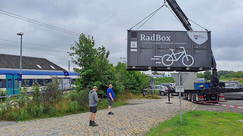 Für die Nutzung eines hochwertigen Fahrrads oder eines teuren E-Bikes für eine längere Strecke ist eine verschließbare Abstellmöglichkeit am Bahnhof eine notwendige Voraussetzung. Für die Gemeinden ist eine größere Fahrradbox jedoch eine erhebliche Investition. Deswegen unterstützt der Kreis die Gemeinden mit der Testmöglichkeit. Das Land Schleswig-Holstein hat die Radbox als Pilotprojekt im Rahmen der Richtlinie „Ab aufs Rad“ gefördert. Weitere Infos findet man online (www.radfahren-steinburg.de/radbox).