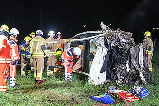 Krempe kurze Zeit später den Unfallort nahe der L119-Kreuzung erreichte, lag der Unfallwagen auf der Seite, in dessen sich immer noch der schwerverletzte Beifahrer befand. Mit hydraulischem Rettungsgerät trennten die Helfer das Dach schließlich ab und klappten es um, damit der gehbehinderte Mann patientengerecht aus dem Fahrzeug befreit und dem Rettungsdienst übergeben werden konnte. Beide Männer seien danach mit schweren Verletzungen ins Krankenhaus eingeliefert worden, so die Polizei. Der Bereich der L119 wurde für die Maßnahmen für längere Zeit voll gesperrt. Der Unfall zeigt wieder einmal mehr, wie wichtig automatische Notrufsysteme in Fahrzeugen sind. Nach der Rettungsaktion schalteten die Einsatzkräfte noch den Unfallwagen stromlos. Ein Abschleppwagen richtete das Auto auf und transportierte es ab. Foto: Florian Sprenger