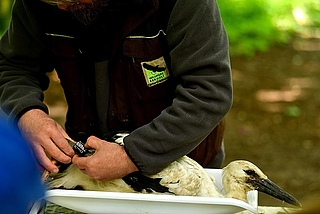 Ab 11 Uhr kann man bei der Beringung von jungen Störchen zusehen. © Wolf v. Schenck