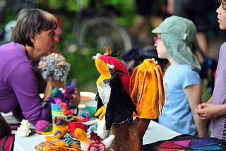 In einer Mitmach-Aktion wird die frisch geschorene Wolle weiterverarbeitet. © Wolf v. Schenck