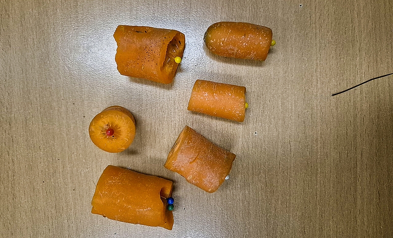 Unbekannte legten diese Köder aus: mit Nadeln bestückte Karotten. (Foto: Polizeidirektion Bad Segeberg)