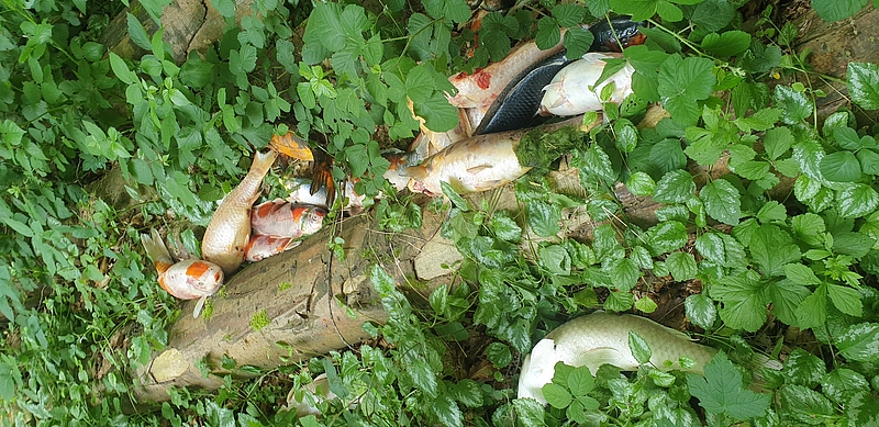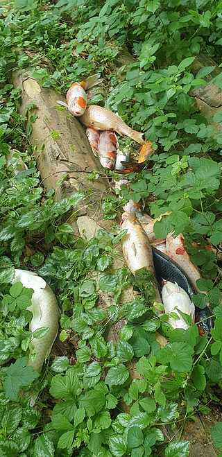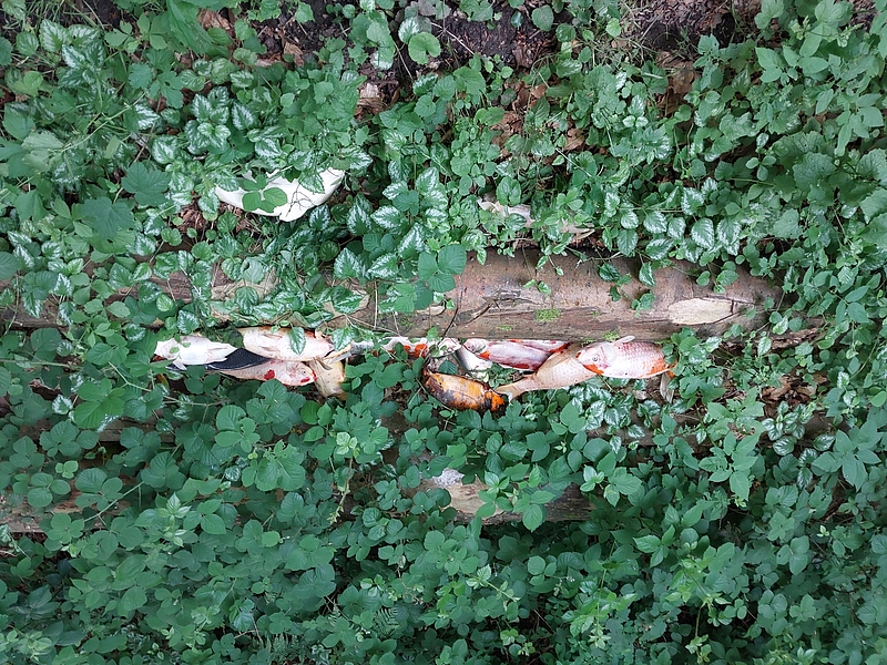 Neumünster (ots) - Am Vormittag des 3. Juni wurde die Polizei in Einfeld durch aufmerksame Bürger auf einen Fall von illegaler Müllentsorgung hingewiesen. Was die Kollegen vor Ort vorfan-den, machte Sie sprachlos. Zunächst entdeckten die Kollegen ein paar Möbelstücke am Wegesrand vom Schönbe-ker Weg, doch ein Stück weiter fanden die Kollegen ca. 30 tote Koi mit einem Gewicht von bis zu 3 kg. Diese waren ebenfalls achtlos am Wegesrand entsorgt worden. Wer und warum die teuren Fische dort abgelegt hat ist bisher nicht bekannt. Hinweise in dem Ermittlungsverfahren nimmt die Polizei in Einfeld unter der Rufnummer 04321-9452400 oder per E-Mail über nms-nord.pst@polizei.landsh.de entgegen.