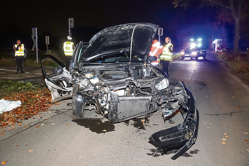 Klein Offenseth-Sparrieshoop (jhf) Schwerer Verkehrsunfall auf der AKN-Strecke zwischen Elmshorn und Barmstedt: Auf dem Bahnübergang Waldstraße in Klein Offenseth-Sparrieshoop wurde am Montag gegen 18.40 Uhr ein VW Golf von einem Zug erfasst. Wie die Polizei mitteilte, wurde der 17-jährige Beifahrer leicht verletzt. Am Auto entstand ein Totalschaden. Die Bahnstrecke war für mehr als zwei Stunden gesperrt. Zunächst wurde befürchtet, dass der 17-Jährige in Lebensgefahr schwebte. Erst nach einer Untersuchung in einer Klinik kam die Entwarnung. „Somit wird nunmehr von leichten Verletzungen ausgegangen“, teilte ein Polizeisprecher mit.