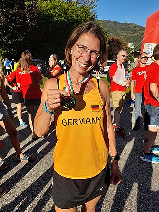 Die Deutschen gehörten beim „Uphill Race“ zwar zu den Favoriten, doch Ute Rohregger hatte niemand auf der Rechnung für die W55-Wertung. Dennoch zündete sie vom Start weg den Turbo und rannte ein phänomenales Rennen.