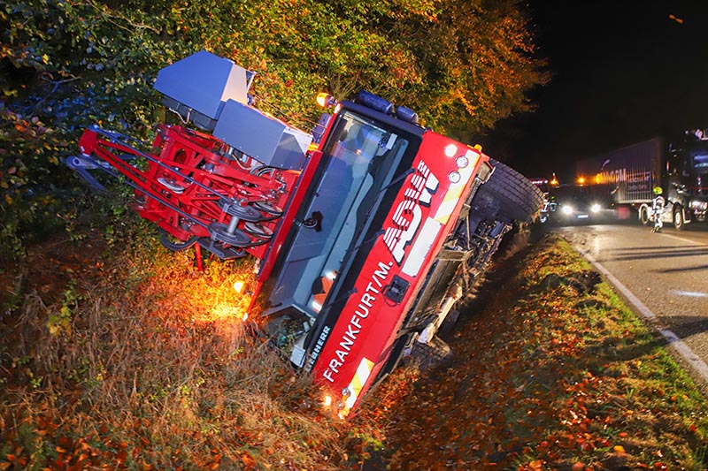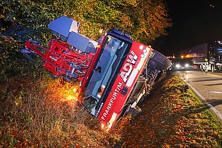 Pöschendorf (fs) – Ein Mobilkran ist heute morgen (28. Oktober) bei Pöschendorf im Graben gelandet. Ob ein technischer Defekt zu dem Unfall führte, muss nun untersucht werden.