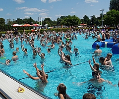 Bad Bramstedt (bmd) – Gebannt schauten die zahlreichen Badegäste hinauf zu den drei…